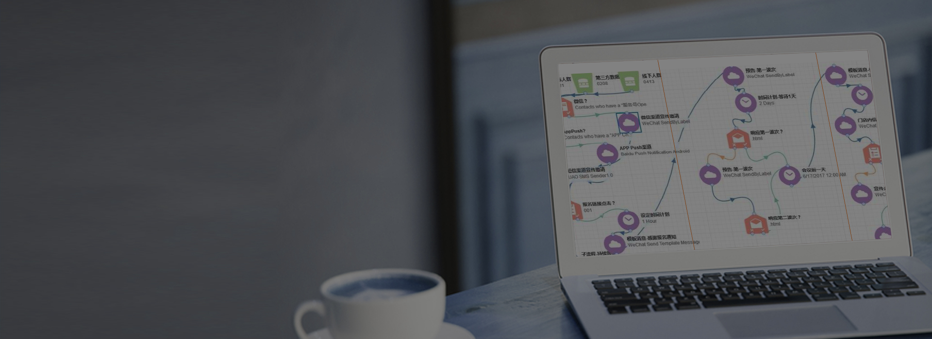 以單個(gè)用戶(hù)為核心,通過(guò)微信、郵件、短信、網(wǎng)站,全渠道與單個(gè)用戶(hù)溝通。監(jiān)測(cè)用戶(hù)各渠道行為,并根據(jù)用戶(hù)行為,自動(dòng)選擇渠道,推送內(nèi)容。