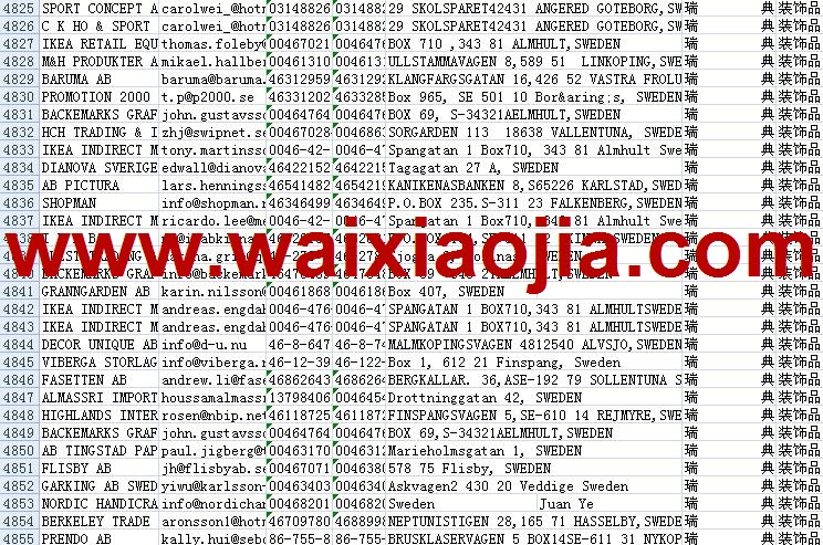 瑞典采購商名單數(shù)據(jù)為Excel格式,信息可任意修改、復制、打印、導出及導入到傳真、郵件群發(fā)等軟件中,無任何限制。
