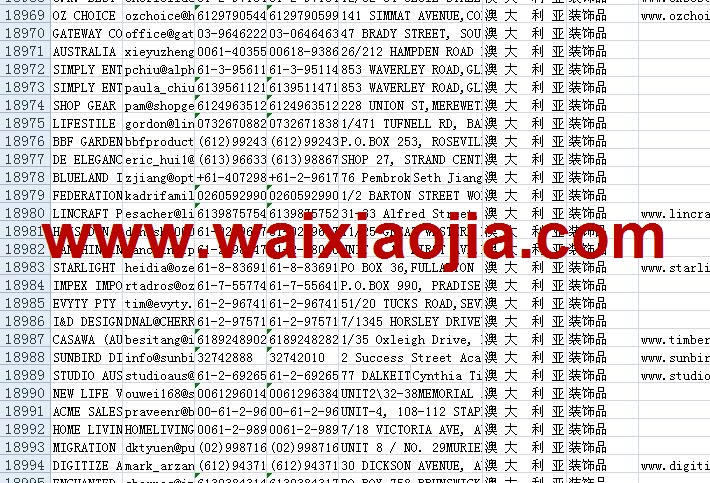 澳大利亞采購商名單數(shù)據(jù)為Excel格式,信息可任意修改、復(fù)制、打印、導(dǎo)出及導(dǎo)入到傳真、郵件群發(fā)等軟件中,無任何限制。