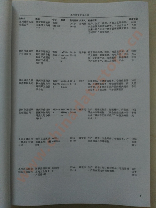 | 惠州外資企業(yè)黃頁 | 所有惠州外企黃頁 | 80% | RMB:800元 |