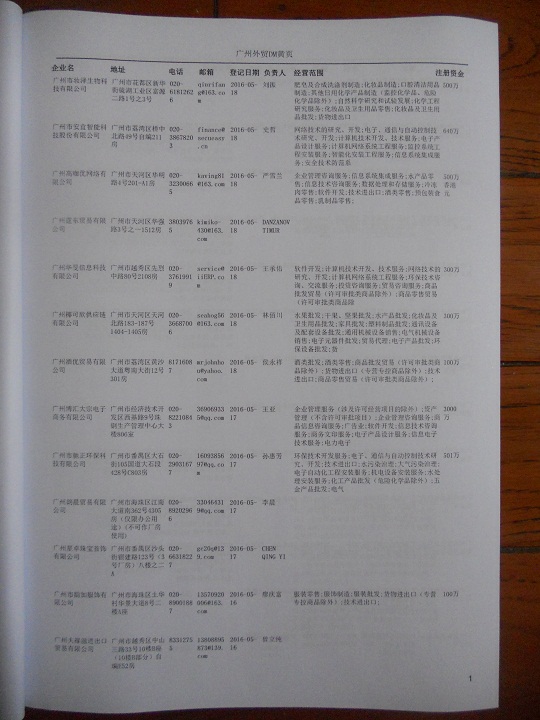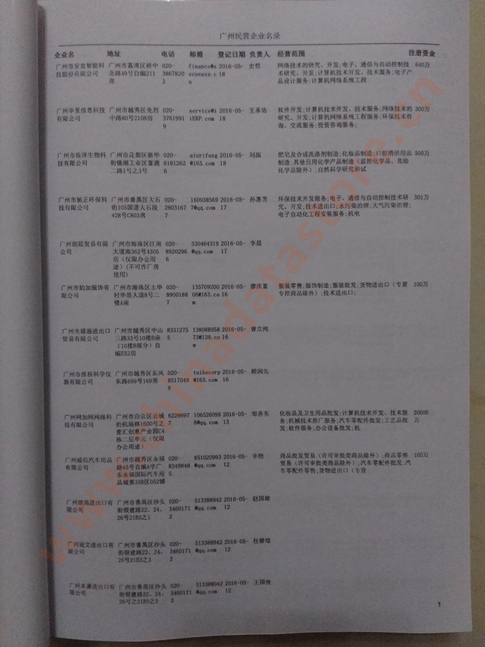 2021版最新廣州企業(yè)黃頁包括《廣州制造企業(yè)黃頁》、《廣州貿(mào)易企業(yè)黃頁》、《廣州民營(yíng)企業(yè)黃頁》、《廣州外資企業(yè)黃頁》、《廣州外貿(mào)企業(yè)黃頁》共五冊(cè),現(xiàn)優(yōu)惠價(jià):280元/冊(cè)。每?jī)?cè)內(nèi)容包括:?jiǎn)挝幻Q、地址、郵編、電話、傳真、郵箱、經(jīng)營(yíng)范圍等;廣州企業(yè)黃頁涵蓋了近幾年來最新成立的、有一定規(guī)模的企業(yè),具有非常高的營(yíng)銷價(jià)值。有了這套黃頁開展業(yè)務(wù)也有了針對(duì)性,也省去了盲目去尋找客戶名單而浪費(fèi)的時(shí)間了,工作效率也會(huì)有很大的提高。歡迎需要廣州企業(yè)黃頁的朋友及時(shí)聯(lián)系我們!