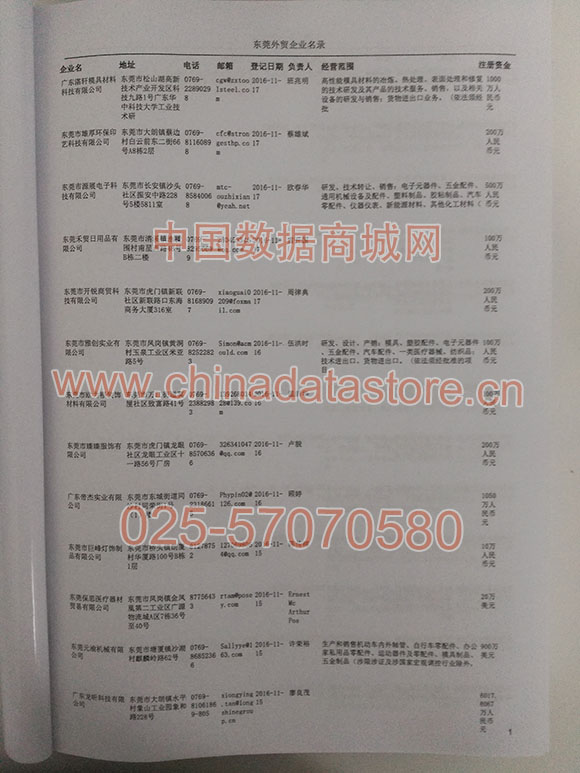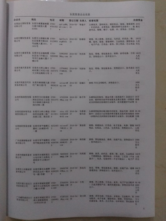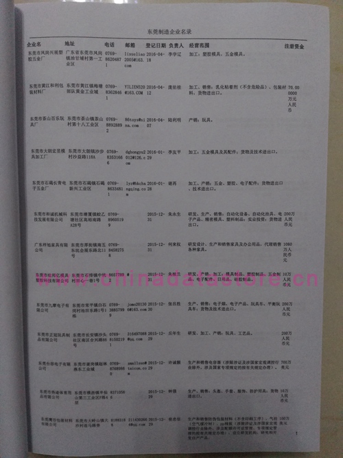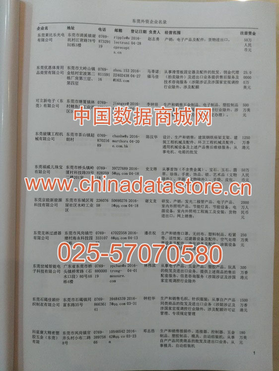 2021版最新東莞企業(yè)黃頁(yè)包括《東莞制造企業(yè)黃頁(yè)》、《東莞貿(mào)易企業(yè)黃頁(yè)》、《東莞民營(yíng)企業(yè)黃頁(yè)》、《東莞外資企業(yè)黃頁(yè)》、《東莞外貿(mào)企業(yè)黃頁(yè)》共五冊(cè),現(xiàn)優(yōu)惠價(jià):280元/冊(cè)。每?jī)?cè)內(nèi)容包括:?jiǎn)挝幻Q(chēng)、地址、郵編、電話、傳真、郵箱、經(jīng)營(yíng)范圍等;東莞企業(yè)黃頁(yè)涵蓋了近幾年來(lái)最新成立的、有一定規(guī)模的企業(yè),具有非常高的營(yíng)銷(xiāo)價(jià)值。有了這套黃頁(yè)開(kāi)展業(yè)務(wù)也有了針對(duì)性,也省去了盲目去尋找客戶名單而浪費(fèi)的時(shí)間了,工作效率也會(huì)有很大的提高。歡迎需要東莞企業(yè)黃頁(yè)的朋友及時(shí)聯(lián)系我們!