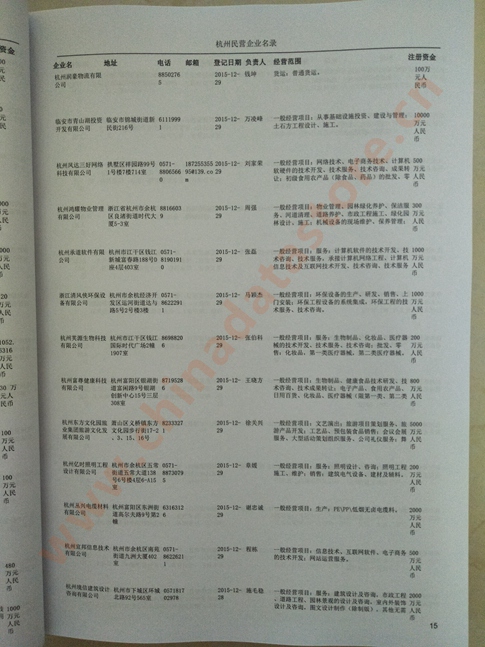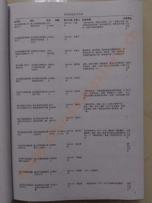 2021版最新杭州企業(yè)黃頁(yè)包括《杭州制造企業(yè)黃頁(yè)》、《杭州貿(mào)易企業(yè)黃頁(yè)》、《杭州民營(yíng)企業(yè)黃頁(yè)》、《杭州外資企業(yè)黃頁(yè)》、《杭州外貿(mào)企業(yè)黃頁(yè)》共五冊(cè),現(xiàn)優(yōu)惠價(jià):280元/冊(cè)。每?jī)?cè)內(nèi)容包括:?jiǎn)挝幻Q、地址、郵編、電話、傳真、郵箱、經(jīng)營(yíng)范圍等;杭州企業(yè)黃頁(yè)涵蓋了近幾年來(lái)最新成立的、有一定規(guī)模的企業(yè),具有非常高的營(yíng)銷(xiāo)價(jià)值。有了這套黃頁(yè)開(kāi)展業(yè)務(wù)也有了針對(duì)性,也省去了盲目去尋找客戶名單而浪費(fèi)的時(shí)間了,工作效率也會(huì)有很大的提高。歡迎需要杭州企業(yè)黃頁(yè)的朋友及時(shí)聯(lián)系我們!