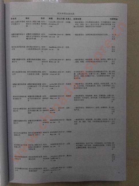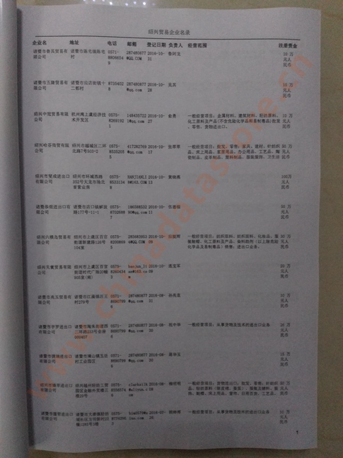 2021版最新紹興企業(yè)黃頁包括《紹興制造企業(yè)黃頁》、《紹興貿(mào)易企業(yè)黃頁》、《紹興民營企業(yè)黃頁》、《紹興外資企業(yè)黃頁》、《紹興外貿(mào)企業(yè)黃頁》共五冊,現(xiàn)優(yōu)惠價:280元/冊。每冊內(nèi)容包括:單位名稱、地址、郵編、電話、傳真、郵箱、經(jīng)營范圍等;紹興企業(yè)黃頁涵蓋了近幾年來最新成立的、有一定規(guī)模的企業(yè),具有非常高的營銷價值。有了這套黃頁開展業(yè)務也有了針對性,也省去了盲目去尋找客戶名單而浪費的時間了,工作效率也會有很大的提高。歡迎需要紹興企業(yè)黃頁的朋友及時聯(lián)系我們!