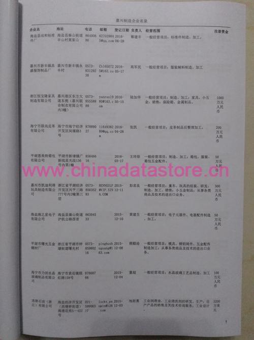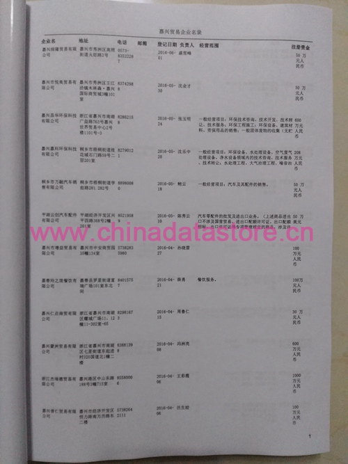 2021版最新嘉興企業(yè)黃頁(yè)包括《嘉興制造企業(yè)黃頁(yè)》、《嘉興貿(mào)易企業(yè)黃頁(yè)》、《嘉興民營(yíng)企業(yè)黃頁(yè)》、《嘉興外資企業(yè)黃頁(yè)》、《嘉興外貿(mào)企業(yè)黃頁(yè)》共五冊(cè),現(xiàn)優(yōu)惠價(jià):280元/冊(cè)。每?jī)?cè)內(nèi)容包括:?jiǎn)挝幻Q(chēng)、地址、郵編、電話、傳真、郵箱、經(jīng)營(yíng)范圍等;嘉興企業(yè)黃頁(yè)涵蓋了近幾年來(lái)最新成立的、有一定規(guī)模的企業(yè),具有非常高的營(yíng)銷(xiāo)價(jià)值。有了這套黃頁(yè)開(kāi)展業(yè)務(wù)也有了針對(duì)性,也省去了盲目去尋找客戶名單而浪費(fèi)的時(shí)間了,工作效率也會(huì)有很大的提高。歡迎需要嘉興企業(yè)黃頁(yè)的朋友及時(shí)聯(lián)系我們!