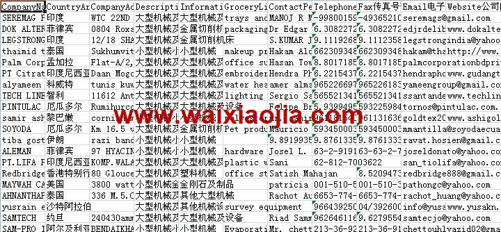 114屆廣交會采購商名單數據為Excel格式,信息可任意修改、復制、打印、導出及導入到傳真、郵件群發(fā)等軟件中,無任何限制。