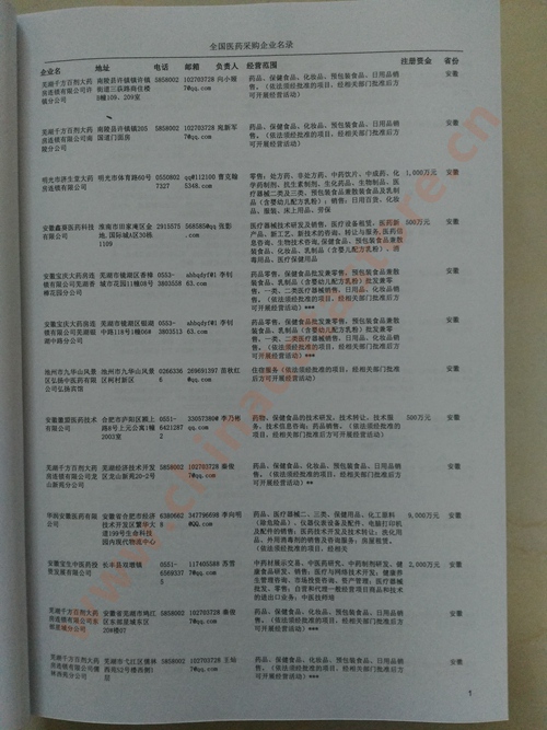 2024年新版中國醫(yī)藥采購企業(yè)黃頁,收錄了全國各地經營范圍涉及醫(yī)藥產品的貿易企業(yè),這些都是頗具實力的醫(yī)藥產品的中國采購商。黃頁內容包含:企業(yè)名稱、地址、電話、傳真、郵箱、經營范圍、省份、注冊資金等信息。該套黃頁包含一個黃頁光碟加一冊紙質書刊,全國價格:1500元,省/直轄市價格:400元,城市價格:200元,共收錄了全國各地大概152246(統(tǒng)計日期:2018.1)家醫(yī)藥產品采購企業(yè)。黃頁光碟中是EXCEL格式,信息可任意修改、復制、打印、導出及導入到傳真、郵件群發(fā)等軟件中,無任何限制。