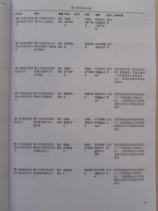 最新廈門貨代公司黃頁 數(shù)據(jù)更新日期2024年12月最新。
