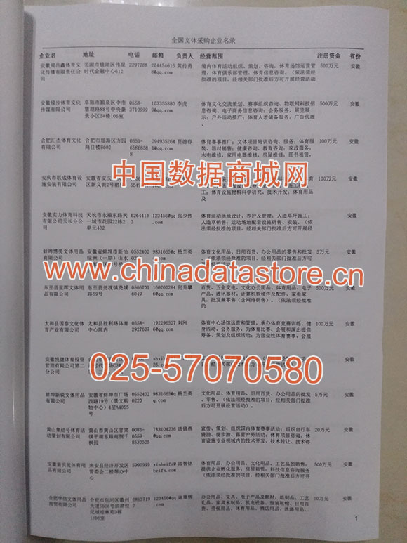 2024年新版中國文體戶外采購企業(yè)黃頁,收錄了全國各地經(jīng)營范圍涉及文體戶外產(chǎn)品的貿(mào)易企業(yè),這些都是頗具實力的文體戶外產(chǎn)品的中國采購商。黃頁內(nèi)容包含:企業(yè)名稱、地址、電話、傳真、郵箱、經(jīng)營范圍、省份、注冊資金等信息。該套黃頁包含一個黃頁光碟加一冊紙質(zhì)書刊,全國價格:1500元,省/直轄市價格:400元,城市價格:200元,共收錄了全國各地大概849(統(tǒng)計日期:2018.1)家文體戶外產(chǎn)品采購企業(yè)。黃頁光碟中是EXCEL格式,信息可任意修改、復(fù)制、打印、導(dǎo)出及導(dǎo)入到傳真、郵件群發(fā)等軟件中,無任何限制。
