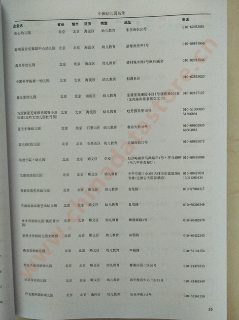 某省或直轄市 如上海、浙江幼兒園名單  80% - 90% 500元 附贈(zèng)一冊(cè)全國(guó)幼兒園名單印刷品