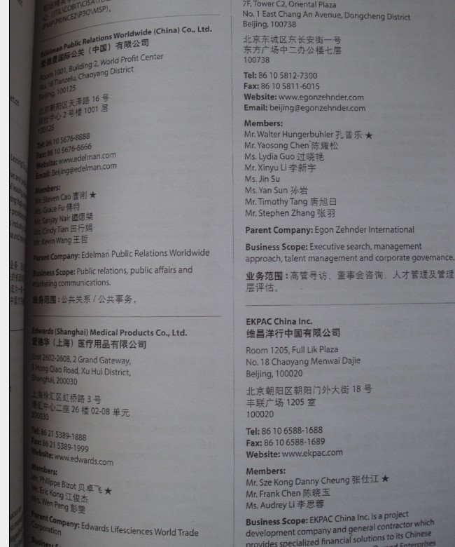 《2016年中國美國商會會員黃頁》為中英文對照形式,收錄了中國美國商會企業(yè)及個(gè)人會員黃頁內(nèi)容包括名稱、地址、郵編、電話、傳真、網(wǎng)址、中國聯(lián)系人、負(fù)責(zé)人、業(yè)務(wù)范圍等詳細(xì)內(nèi)容