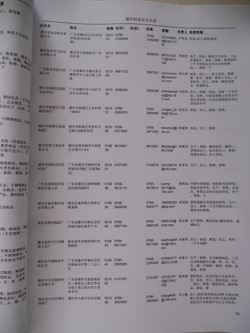 2021版最新潮州企業(yè)黃頁包括《潮州制造企業(yè)黃頁》、《潮州民營(yíng)企業(yè)黃頁》,現(xiàn)優(yōu)惠價(jià):280元/冊(cè)。每?jī)?cè)內(nèi)容包括:?jiǎn)挝幻Q、地址、郵編、電話、傳真、郵箱、經(jīng)營(yíng)范圍等;潮州企業(yè)黃頁涵蓋了近幾年來最新成立的、有一定規(guī)模的企業(yè),具有非常高的營(yíng)銷價(jià)值。有了這套黃頁開展業(yè)務(wù)也有了針對(duì)性,也省去了盲目去尋找客戶名單而浪費(fèi)的時(shí)間了,工作效率也會(huì)有很大的提高。歡迎需要潮州企業(yè)黃頁的朋友及時(shí)聯(lián)系我們!