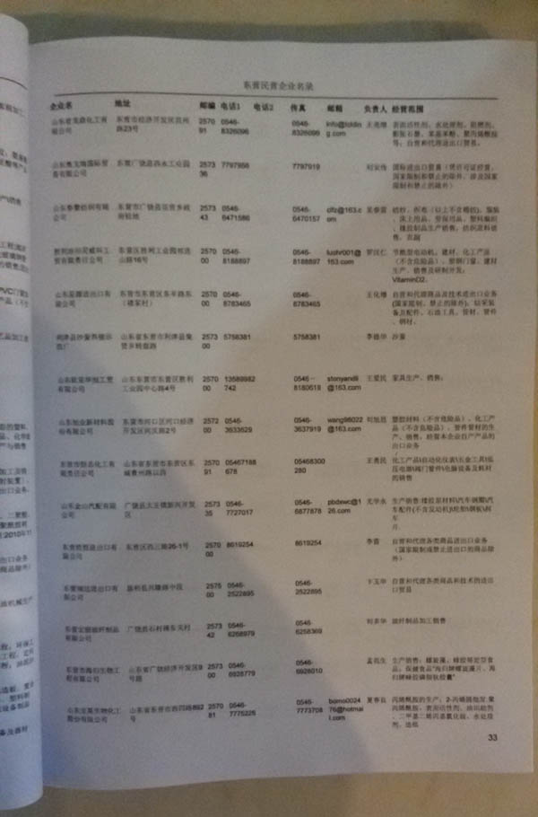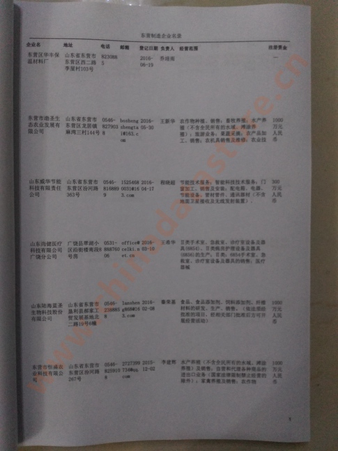 2021版最新東營企業(yè)黃頁包括《東營制造企業(yè)黃頁》、《東營民營企業(yè)黃頁》,現(xiàn)優(yōu)惠價:280元/冊。每冊內(nèi)容包括:單位名稱、地址、郵編、電話、傳真、郵箱、經(jīng)營范圍等;東營企業(yè)黃頁涵蓋了近幾年來最新成立的、有一定規(guī)模的企業(yè),具有非常高的營銷價值。有了這套黃頁開展業(yè)務(wù)也有了針對性,也省去了盲目去尋找客戶名單而浪費的時間了,工作效率也會有很大的提高。歡迎需要東營企業(yè)黃頁的朋友及時聯(lián)系我們!
