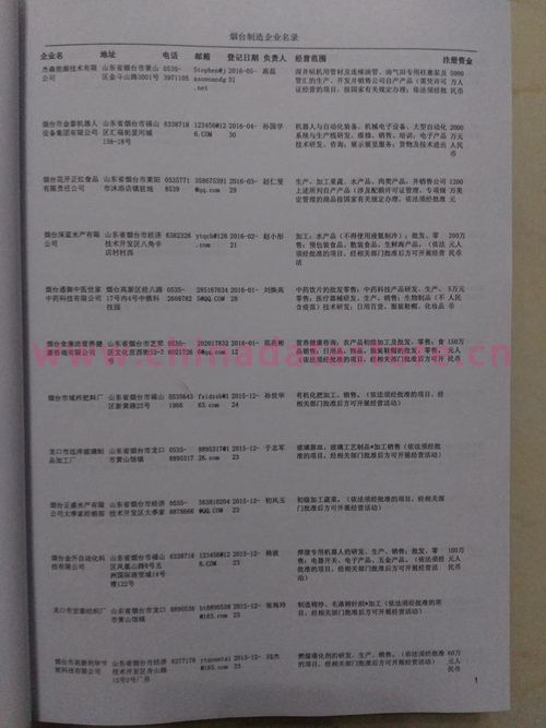 2021版最新煙臺企業(yè)黃頁包括《煙臺制造企業(yè)黃頁》、《煙臺民營企業(yè)黃頁》,現(xiàn)優(yōu)惠價(jià):280元/冊。每冊內(nèi)容包括:單位名稱、地址、郵編、電話、傳真、郵箱、經(jīng)營范圍等;煙臺企業(yè)黃頁涵蓋了近幾年來最新成立的、有一定規(guī)模的企業(yè),具有非常高的營銷價(jià)值。有了這套黃頁開展業(yè)務(wù)也有了針對性,也省去了盲目去尋找客戶名單而浪費(fèi)的時(shí)間了,工作效率也會有很大的提高。歡迎需要煙臺企業(yè)黃頁的朋友及時(shí)聯(lián)系我們!