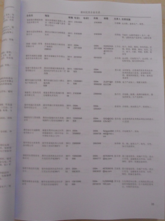 2021版最新莆田企業(yè)黃頁(yè)包括《莆田制造企業(yè)黃頁(yè)》、《莆田民營(yíng)企業(yè)黃頁(yè)》,現(xiàn)優(yōu)惠價(jià):280元/冊(cè)。每?jī)?cè)內(nèi)容包括:?jiǎn)挝幻Q(chēng)、地址、郵編、電話、傳真、郵箱、經(jīng)營(yíng)范圍等;莆田企業(yè)黃頁(yè)涵蓋了近幾年來(lái)最新成立的、有一定規(guī)模的企業(yè),具有非常高的營(yíng)銷(xiāo)價(jià)值。有了這套黃頁(yè)開(kāi)展業(yè)務(wù)也有了針對(duì)性,也省去了盲目去尋找客戶名單而浪費(fèi)的時(shí)間了,工作效率也會(huì)有很大的提高。歡迎需要莆田企業(yè)黃頁(yè)的朋友及時(shí)聯(lián)系我們!