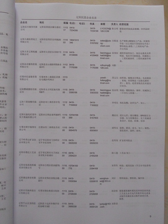 2021版最新遼陽企業(yè)黃頁包括《遼陽制造企業(yè)黃頁》、《遼陽民營(yíng)企業(yè)黃頁》,現(xiàn)優(yōu)惠價(jià):280元/冊(cè)。每?jī)?cè)內(nèi)容包括:?jiǎn)挝幻Q、地址、郵編、電話、傳真、郵箱、經(jīng)營(yíng)范圍等;遼陽企業(yè)黃頁涵蓋了近幾年來最新成立的、有一定規(guī)模的企業(yè),具有非常高的營(yíng)銷價(jià)值。有了這套黃頁開展業(yè)務(wù)也有了針對(duì)性,也省去了盲目去尋找客戶名單而浪費(fèi)的時(shí)間了,工作效率也會(huì)有很大的提高。歡迎需要遼陽企業(yè)黃頁的朋友及時(shí)聯(lián)系我們!