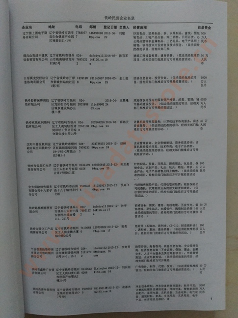 2021版最新鐵嶺企業(yè)黃頁(yè)包括《鐵嶺制造企業(yè)黃頁(yè)》、《鐵嶺民營(yíng)企業(yè)黃頁(yè)》,現(xiàn)優(yōu)惠價(jià):280元/冊(cè)。每?jī)?cè)內(nèi)容包括:?jiǎn)挝幻Q、地址、郵編、電話、傳真、郵箱、經(jīng)營(yíng)范圍等;鐵嶺企業(yè)黃頁(yè)涵蓋了近幾年來(lái)最新成立的、有一定規(guī)模的企業(yè),具有非常高的營(yíng)銷價(jià)值。有了這套黃頁(yè)開(kāi)展業(yè)務(wù)也有了針對(duì)性,也省去了盲目去尋找客戶名單而浪費(fèi)的時(shí)間了,工作效率也會(huì)有很大的提高。歡迎需要鐵嶺企業(yè)黃頁(yè)的朋友及時(shí)聯(lián)系我們!
