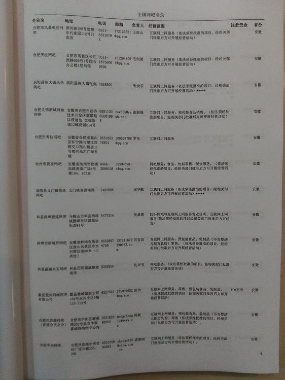某省或直轄市 如上海、浙江網(wǎng)吧名單  80% - 90% 600元 附贈一冊網(wǎng)吧紙質(zhì)印刷品