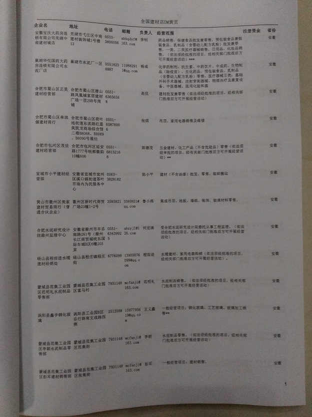 某省或直轄市 如上海、浙江建材店名單  80% - 90% 600元 附贈(zèng)一冊(cè)建材店紙質(zhì)印刷品