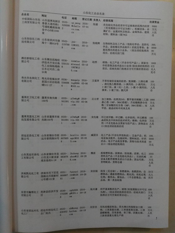 山東化工企業(yè)黃頁(yè)收錄了最新的山東化工企業(yè)名單,具有極高的營(yíng)銷(xiāo)價(jià)值,實(shí)實(shí)在在提高銷(xiāo)售業(yè)績(jī)