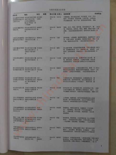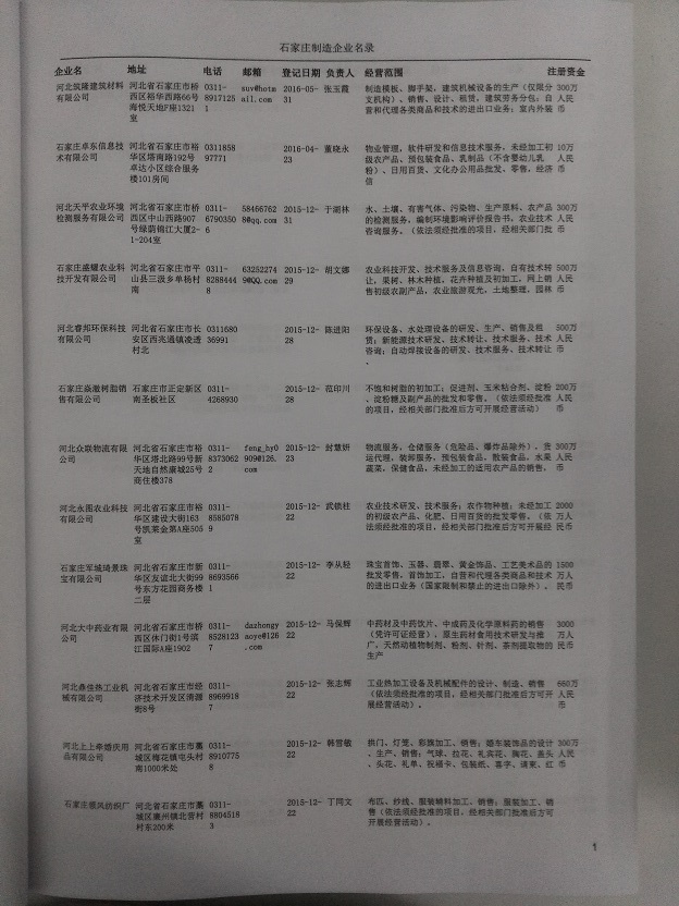 2021版最新石家莊企業(yè)黃頁包括《石家莊制造企業(yè)黃頁》、《石家莊民營企業(yè)黃頁》,現(xiàn)優(yōu)惠價:280元/冊。每冊內(nèi)容包括:單位名稱、地址、郵編、電話、傳真、郵箱、經(jīng)營范圍等;石家莊企業(yè)黃頁涵蓋了近幾年來最新成立的、有一定規(guī)模的企業(yè),具有非常高的營銷價值。有了這套黃頁開展業(yè)務(wù)也有了針對性,也省去了盲目去尋找客戶名單而浪費的時間了,工作效率也會有很大的提高。歡迎需要石家莊企業(yè)黃頁的朋友及時聯(lián)系我們!
