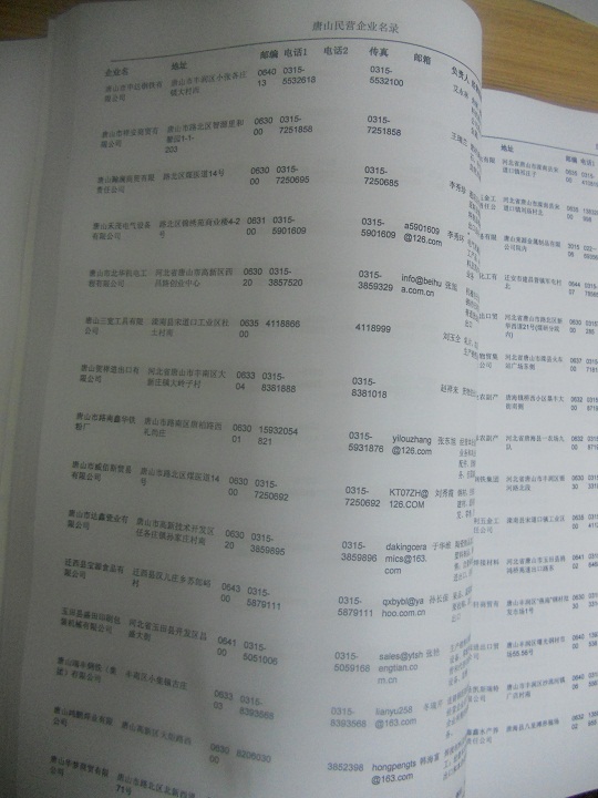 2021版最新唐山企業(yè)黃頁包括《唐山制造企業(yè)黃頁》、《唐山民營企業(yè)黃頁》,現(xiàn)優(yōu)惠價:280元/冊。每冊內(nèi)容包括:單位名稱、地址、郵編、電話、傳真、郵箱、經(jīng)營范圍等;唐山企業(yè)黃頁涵蓋了近幾年來最新成立的、有一定規(guī)模的企業(yè),具有非常高的營銷價值。有了這套黃頁開展業(yè)務(wù)也有了針對性,也省去了盲目去尋找客戶名單而浪費的時間了,工作效率也會有很大的提高。歡迎需要唐山企業(yè)黃頁的朋友及時聯(lián)系我們!