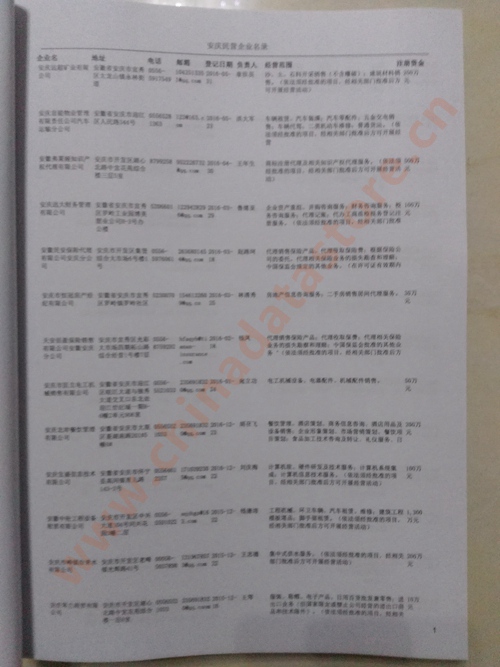 2021版最新安慶企業(yè)黃頁包括《安慶制造企業(yè)黃頁》、《安慶民營企業(yè)黃頁》,現(xiàn)優(yōu)惠價:280元/冊。每冊內(nèi)容包括:單位名稱、地址、郵編、電話、傳真、郵箱、經(jīng)營范圍等;安慶企業(yè)黃頁涵蓋了近幾年來最新成立的、有一定規(guī)模的企業(yè),具有非常高的營銷價值。有了這套黃頁開展業(yè)務也有了針對性,也省去了盲目去尋找客戶名單而浪費的時間了,工作效率也會有很大的提高。歡迎需要安慶企業(yè)黃頁的朋友及時聯(lián)系我們!