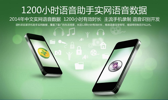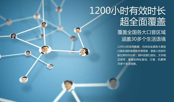 語音助手實網(wǎng)采集有效時長1200小時,653296名發(fā)音人,覆蓋所有生活場景,文字轉寫錯誤率<5%,用于語音識別、人機智能交互等