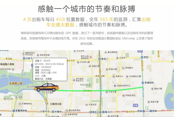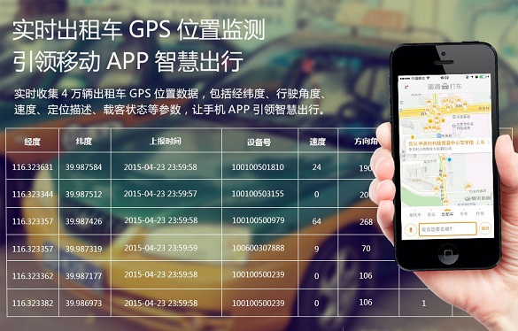 數(shù)據(jù)價(jià)格:¥12000.00 / 季度(2013年至今4萬(wàn)輛出租車(chē)GPS位置實(shí)時(shí)數(shù)據(jù),包括經(jīng)緯度、行駛角度、速度、定位狀態(tài)等,可用于智能交通、用戶(hù)行為分析、城市規(guī)劃、商業(yè)選址等