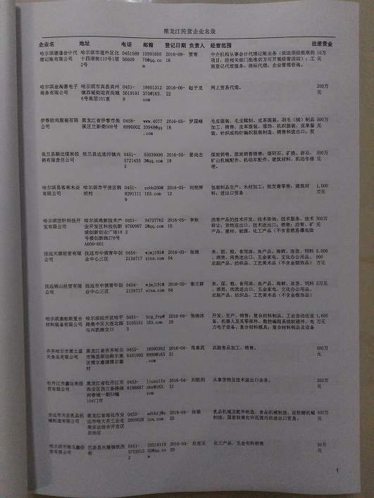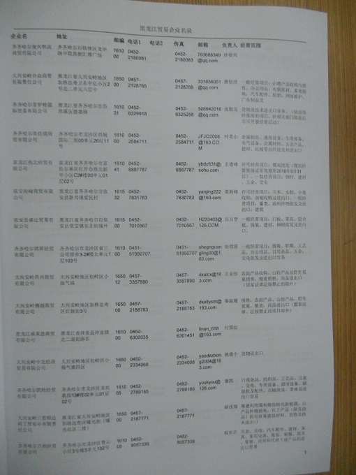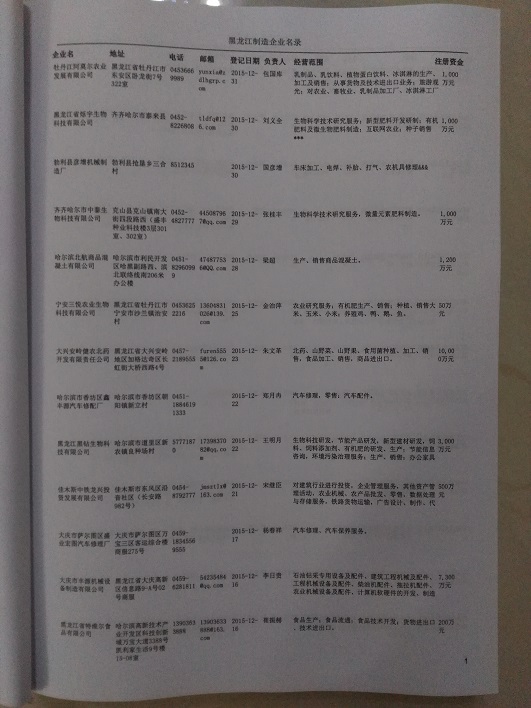 2021版最新黑龍江企業(yè)黃頁包括《黑龍江制造企業(yè)黃頁》、《黑龍江貿易企業(yè)黃頁》、《黑龍江民營企業(yè)黃頁》共三冊,優(yōu)惠價:280元/冊。每冊內容包括:單位名稱、地址、郵編、電話、傳真、郵箱、經(jīng)營范圍等;黑龍江企業(yè)黃頁涵蓋了近幾年來最新成立的、有一定規(guī)模的企業(yè),具有非常高的營銷價值。有了這套黃頁開展業(yè)務也有了針對性,也省去了盲目去尋找客戶名單而浪費的時間了,工作效率也會有很大的提高。歡迎需要黑龍江企業(yè)黃頁的朋友及時聯(lián)系我們!