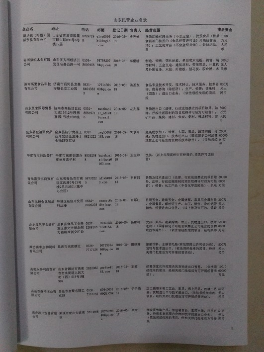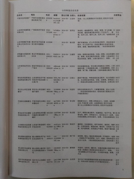 2021版最新山東企業(yè)黃頁包括《山東制造企業(yè)黃頁》、《山東貿(mào)易企業(yè)黃頁》、《山東民營企業(yè)黃頁》共三冊,優(yōu)惠價:280元/冊。每冊內(nèi)容包括:單位名稱、地址、郵編、電話、傳真、郵箱、經(jīng)營范圍等;山東企業(yè)黃頁涵蓋了近幾年來最新成立的、有一定規(guī)模的企業(yè),具有非常高的營銷價值。有了這套黃頁開展業(yè)務(wù)也有了針對性,也省去了盲目去尋找客戶名單而浪費的時間了,工作效率也會有很大的提高。歡迎需要山東企業(yè)黃頁的朋友及時聯(lián)系我們!
