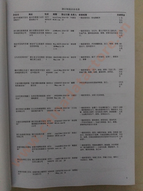 2021版最新浙江企業(yè)黃頁包括《浙江制造企業(yè)黃頁》、《浙江貿(mào)易企業(yè)黃頁》、《浙江民營企業(yè)黃頁》共三冊(cè),優(yōu)惠價(jià):280元/冊(cè)。每冊(cè)內(nèi)容包括:?jiǎn)挝幻Q、地址、郵編、電話、傳真、郵箱、經(jīng)營范圍等;浙江企業(yè)黃頁涵蓋了近幾年來最新成立的、有一定規(guī)模的企業(yè),具有非常高的營銷價(jià)值。有了這套黃頁開展業(yè)務(wù)也有了針對(duì)性,也省去了盲目去尋找客戶名單而浪費(fèi)的時(shí)間了,工作效率也會(huì)有很大的提高。歡迎需要浙江企業(yè)黃頁的朋友及時(shí)聯(lián)系我們!