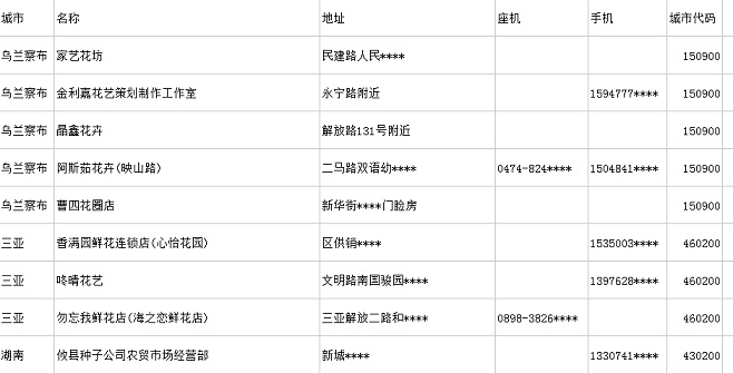 數(shù)據(jù)介紹:包含字段:城市、名稱、地址、座機(jī)、手機(jī)、城市代碼
