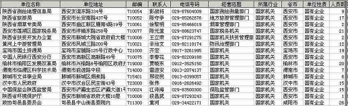數(shù)據(jù)介紹:涵蓋國(guó)內(nèi)各個(gè)行業(yè)、各個(gè)省份的政府或事業(yè)單位信息,包括單位名、地址、聯(lián)系方式、負(fù)責(zé)人、人數(shù)、電話(huà)、行業(yè)說(shuō)明等。本數(shù)據(jù)庫(kù)適合信函營(yíng)銷(xiāo)、電話(huà)營(yíng)銷(xiāo)