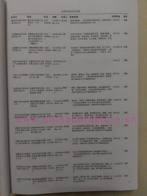 某省或直轄市 如上海、浙江石油企業(yè)名單  80% - 90% 600元 附贈一冊石油紙質(zhì)印刷品