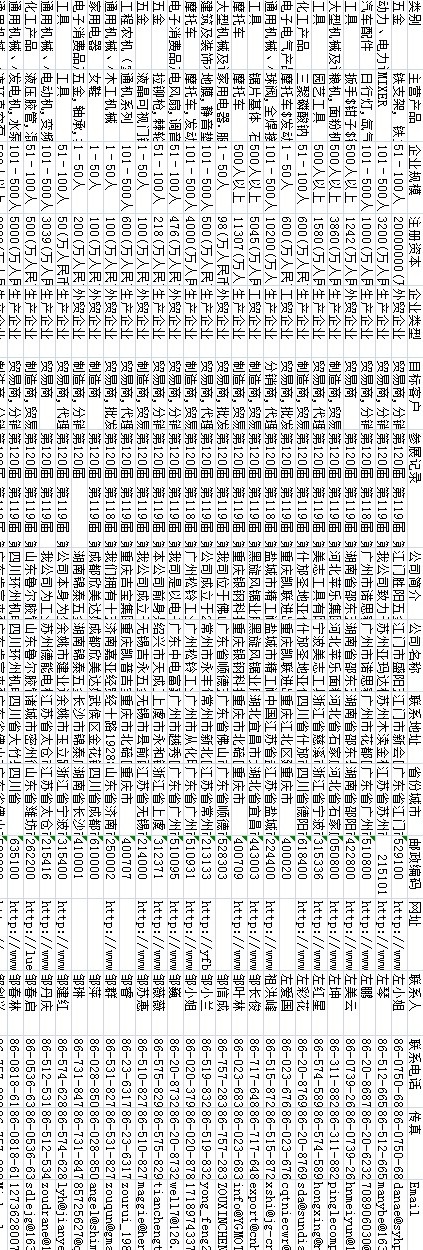 120屆廣交會參展商黃頁數據為Excel格式,信息可任意修改、復制、打印、導出及導入到傳真、郵件群發(fā)等軟件中,無任何限制。