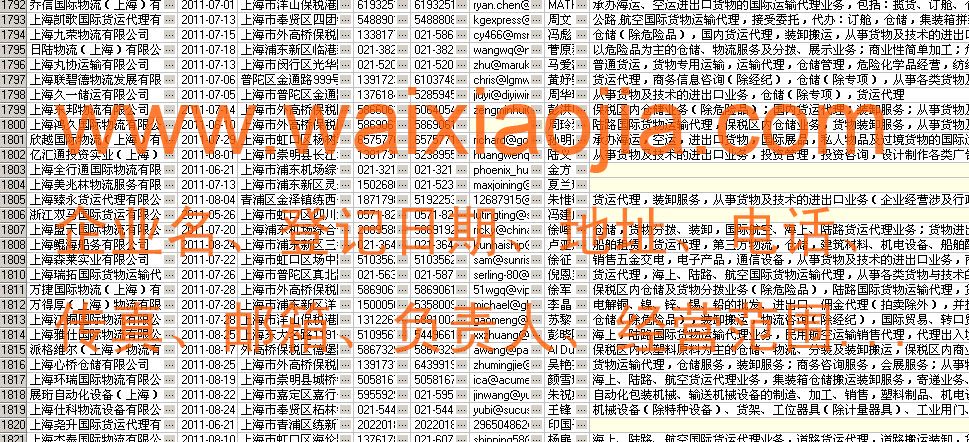 安徽貨運(yùn)代理公司名單數(shù)據(jù)為Excel格式,信息可任意修改、復(fù)制、打印、導(dǎo)出及導(dǎo)入到傳真、郵件群發(fā)等軟件中,無(wú)任何限制。