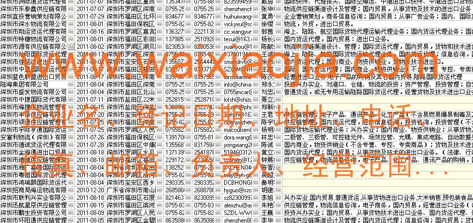 深圳貨運(yùn)代理公司名單數(shù)據(jù)為Excel格式,信息可任意修改、復(fù)制、打印、導(dǎo)出及導(dǎo)入到傳真、郵件群發(fā)等軟件中,無(wú)任何限制。