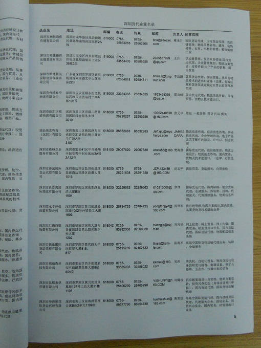 深圳貨運(yùn)公司黃頁(yè)包括:企業(yè)名稱、負(fù)責(zé)人聯(lián)系方式、企業(yè)電話、傳真、Email、經(jīng)營(yíng)范圍、地址、郵編等信息。