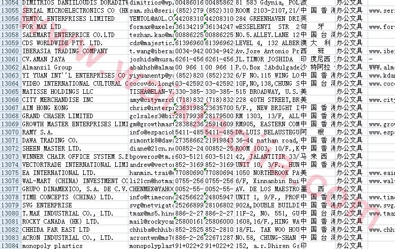 辦公文教采購商名單數(shù)據(jù)為Excel格式,信息可任意修改、復(fù)制、打印、導(dǎo)出及導(dǎo)入到傳真、郵件群發(fā)等軟件中,無任何限制。