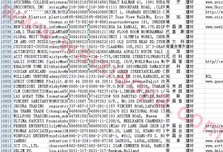 建材行業(yè)采購商名單數(shù)據(jù)為Excel格式,信息可任意修改、復(fù)制、打印、導(dǎo)出及導(dǎo)入到傳真、郵件群發(fā)等軟件中,無任何限制。