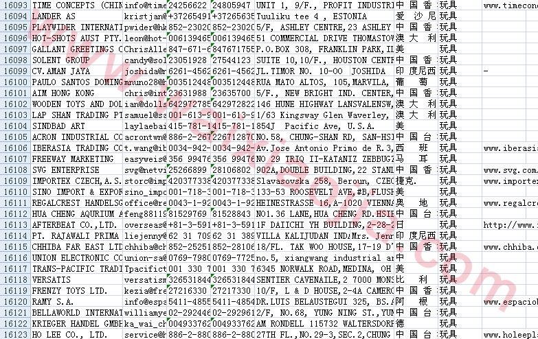 玩具采購商名單數(shù)據(jù)為Excel格式,信息可任意修改、復制、打印、導出及導入到傳真、郵件群發(fā)等軟件中,無任何限制。