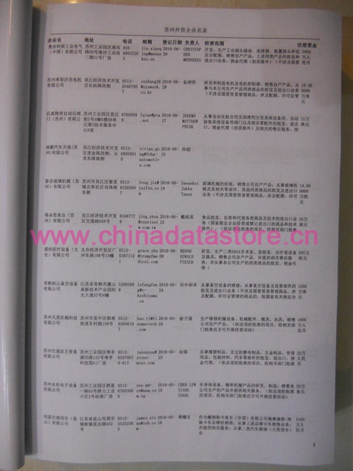 最新蘇州外資企業(yè)黃頁(yè)涵蓋了蘇州外商獨(dú)資企業(yè)、中外合資經(jīng)營(yíng)企業(yè)以及港、澳、臺(tái)資企業(yè),包括蘇州臺(tái)資日資企業(yè)黃頁(yè),蘇州外企黃頁(yè)黃頁(yè)具體內(nèi)容包括:企業(yè)名稱、地址、電話、傳真、郵箱、經(jīng)營(yíng)范圍、注冊(cè)資金等信息;蘇州臺(tái)企日企名單里面的企業(yè)都一些中外合資的大企業(yè),這些公司經(jīng)濟(jì)實(shí)力都比較雄厚,出口產(chǎn)品也比較多,業(yè)務(wù)范圍都比較廣,跟他們開展業(yè)務(wù)往來(lái)都比較容易;有了蘇州外企黃頁(yè)開展業(yè)務(wù)也有了針對(duì)性,也省去了盲目去尋找客戶名單而浪費(fèi)的時(shí)間了,工作效率也會(huì)有很大的提高.歡迎需要的客戶及時(shí)聯(lián)系我們!