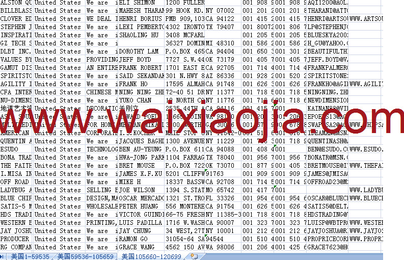 美國采購商名單數(shù)據(jù)為Excel格式,信息可任意修改、復(fù)制、打印、導(dǎo)出及導(dǎo)入到傳真、郵件群發(fā)等軟件中,無任何限制。