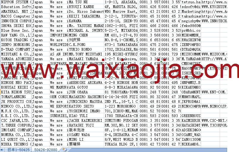 日本采購商名單數(shù)據(jù)為Excel格式,信息可任意修改、復(fù)制、打印、導(dǎo)出及導(dǎo)入到傳真、郵件群發(fā)等軟件中,無任何限制。