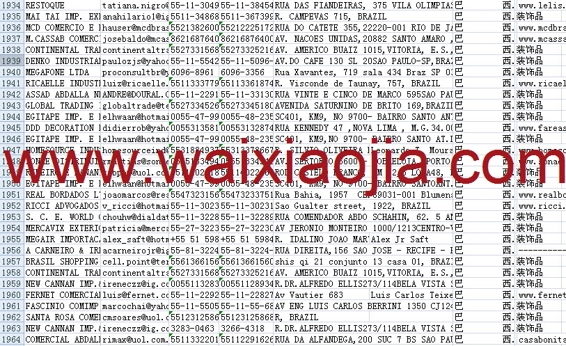 巴西采購(gòu)商名單數(shù)據(jù)為Excel格式,信息可任意修改、復(fù)制、打印、導(dǎo)出及導(dǎo)入到傳真、郵件群發(fā)等軟件中,無(wú)任何限制。