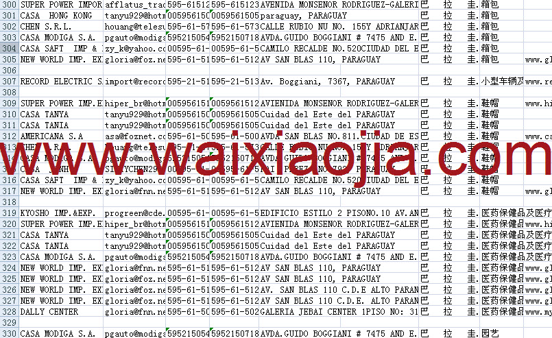 巴拉圭采購(gòu)商名單數(shù)據(jù)為Excel格式,信息可任意修改、復(fù)制、打印、導(dǎo)出及導(dǎo)入到傳真、郵件群發(fā)等軟件中,無(wú)任何限制。