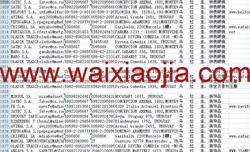 烏拉圭采購(gòu)商名單數(shù)據(jù)為Excel格式,信息可任意修改、復(fù)制、打印、導(dǎo)出及導(dǎo)入到傳真、郵件群發(fā)等軟件中,無(wú)任何限制。